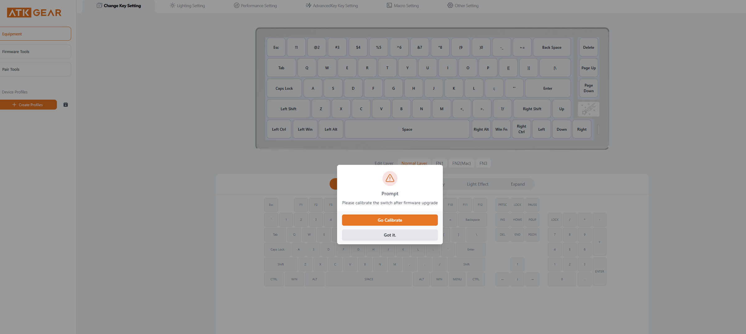 Sau khi đã cập nhật lên phiên bản mới nhất, phím sẽ yêu cầu Calibrate lại switch
