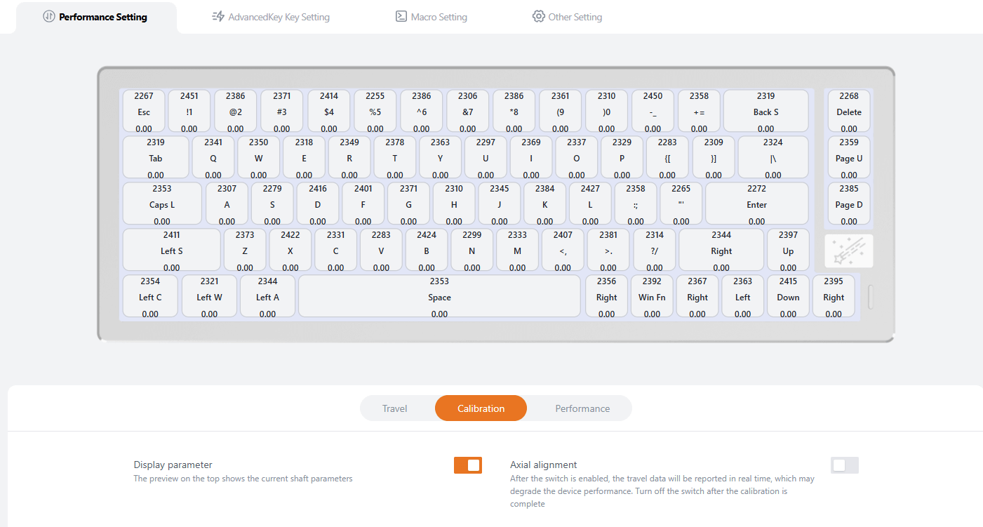 Đây là một bước rất quan trọng, do phím HE hoạt động dựa trên sự chuyển động của 1 nam châm bên trong switch, nên lâu dài khi sử dụng sẽ có xảy ra sai lệch, cần phải cân lại switch