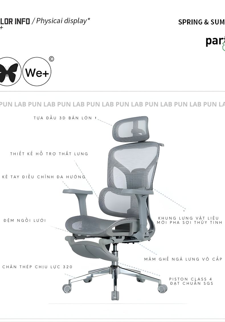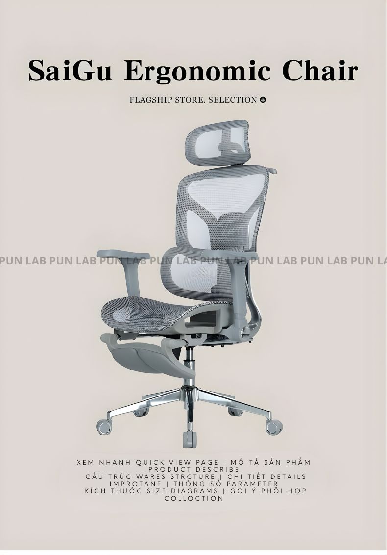 Ghế Công Thái Học SG-Aries 2000 - Khung Nhôm, Piston Class 4