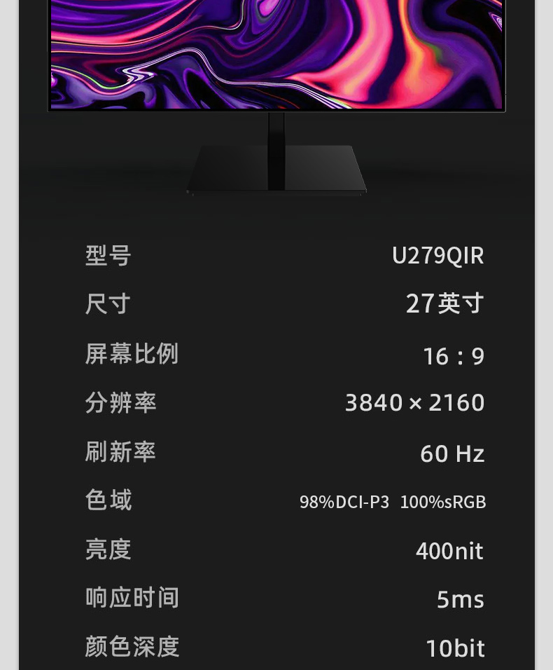 Màn Hình Chuyên Đồ Họa Tuoshuo RL278UXM – 27 Inch | 4K UHD | Nano IPS | 98% DCI-P3 | Type-C | HDR400